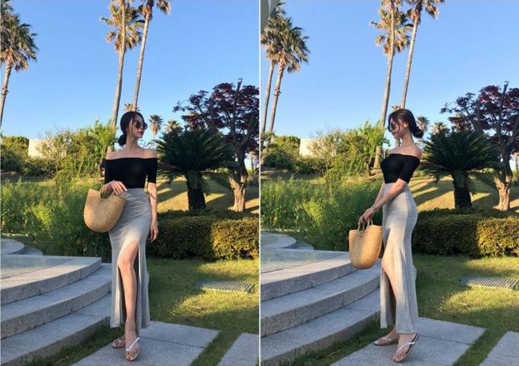 ロング丈で上品な印象を与えながら、サイドに入った深めのスリットが歩きやすさと程よい肌見せを演出します。