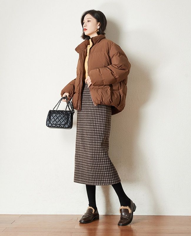 秋冬のコーディネートに取り入れやすく、ニットやアウターとの相性も抜群の一枚です。