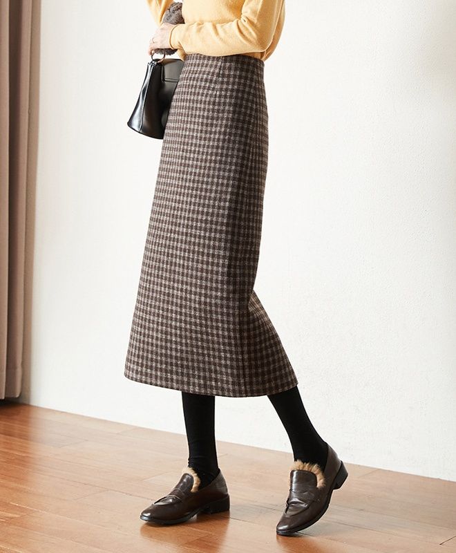 上品な千鳥格子柄が印象的なタイトスカートです。