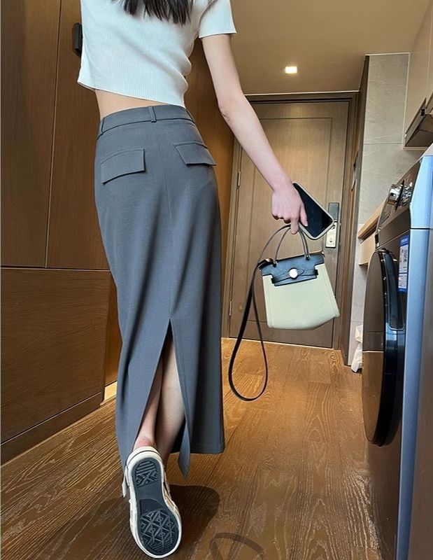 サイドに入ったスリットが歩きやすさと抜け感をプラスし、バックポケットがアクセントになったデザインです。