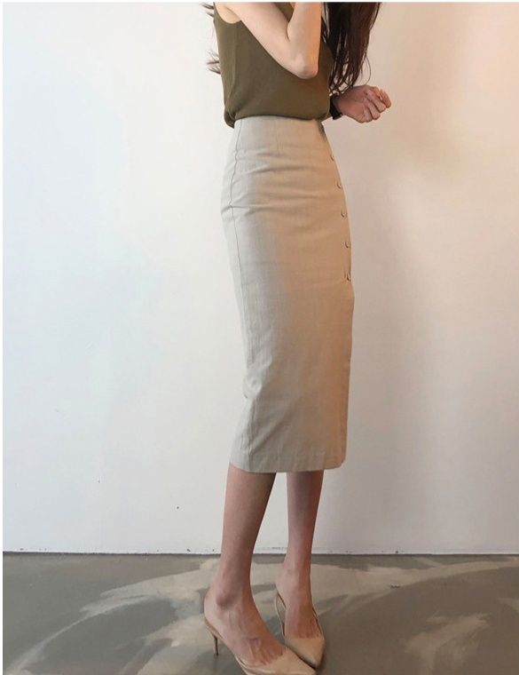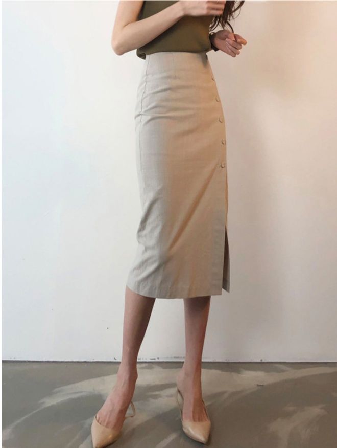 洗練されたデザインが魅力的なひざ丈のタイトスカートです。