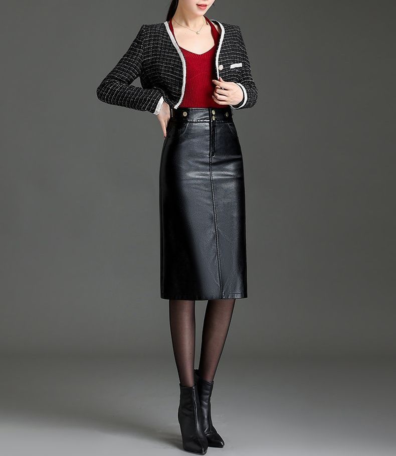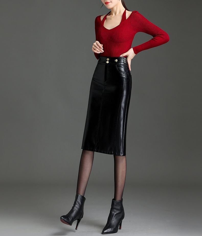 上質な合成皮革を使用したエレガントなタイトスカートです。