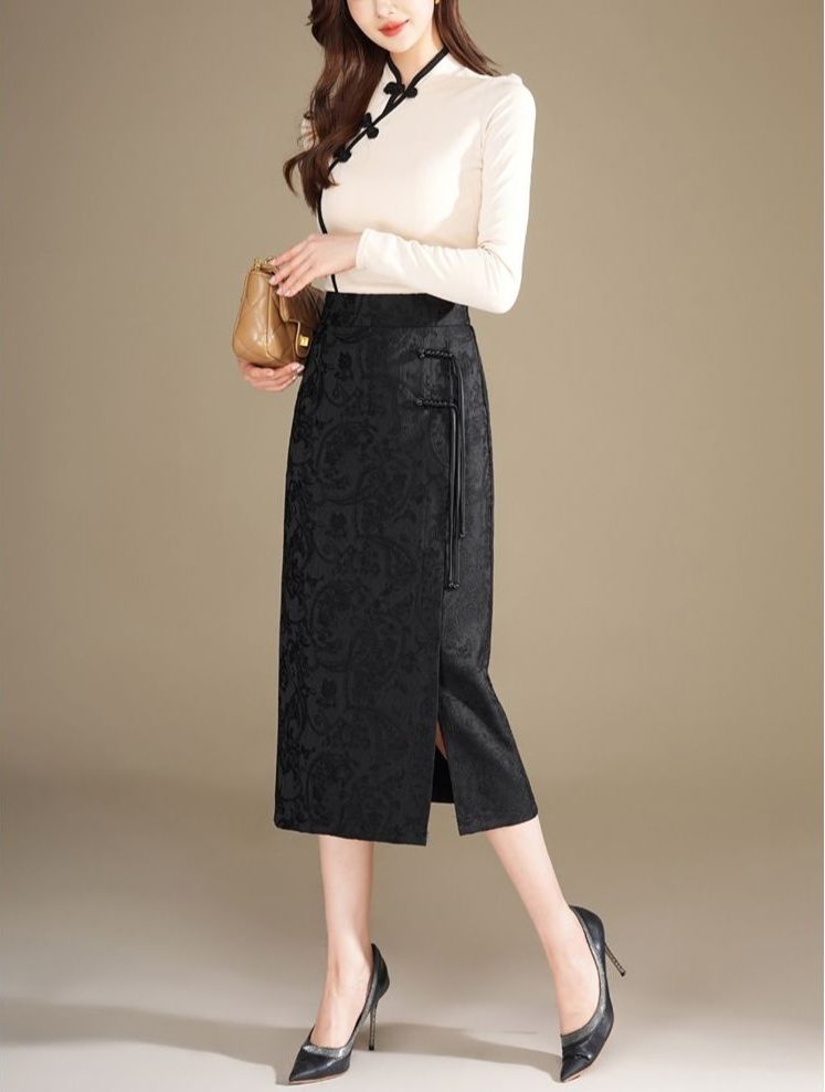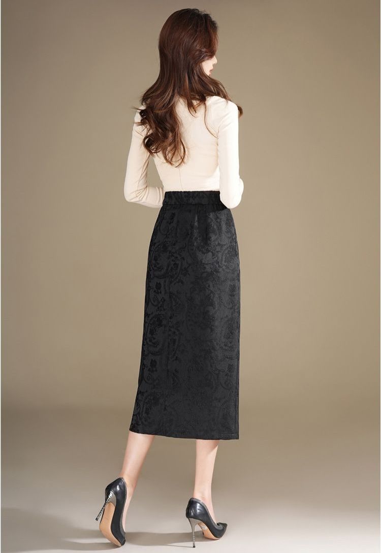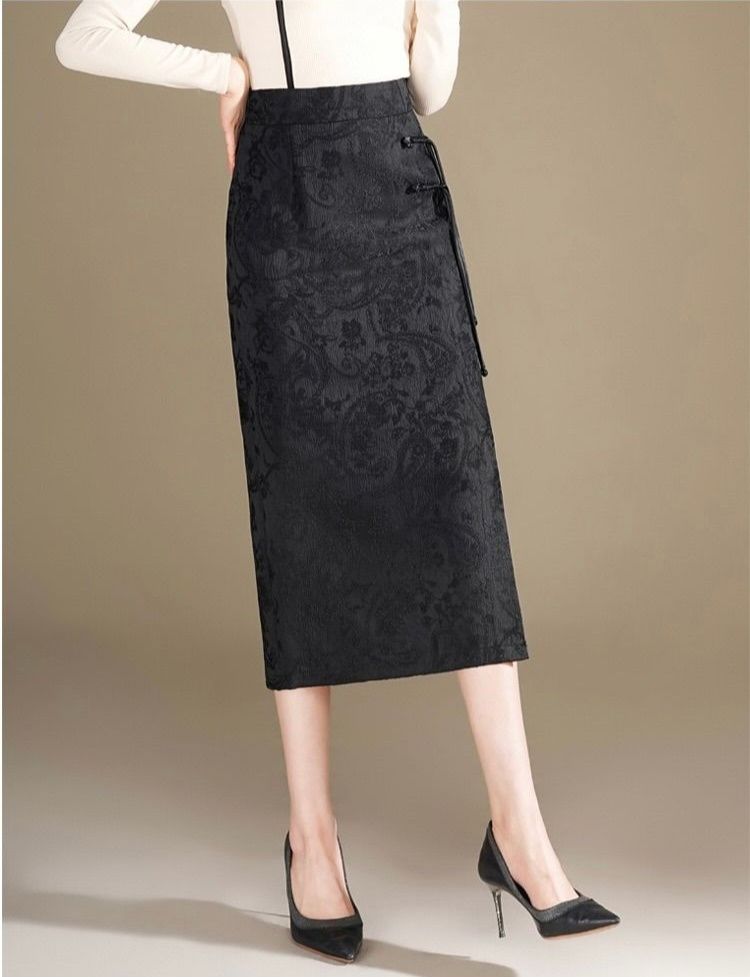 上品な花柄ジャガード織りが美しいタイトスカートです。