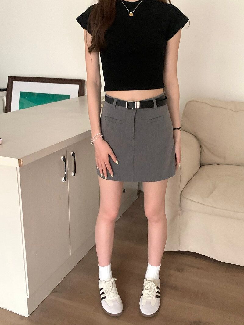 ミニ丈で脚長効果を演出し、すっきりとした着こなしを叶えます。