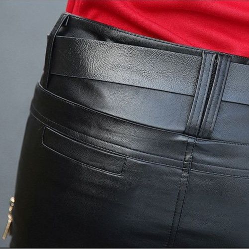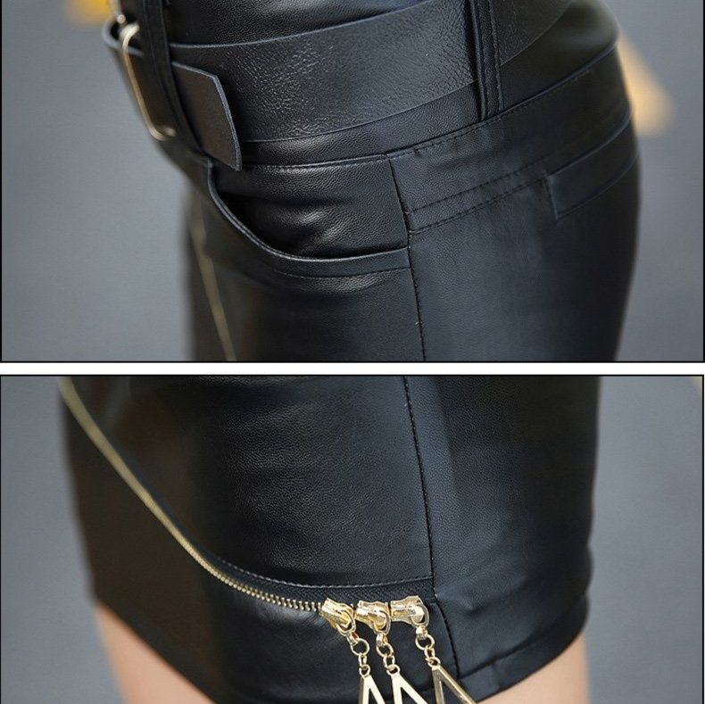 上質な合成皮革を使用したミニ丈のタイトスカートです。