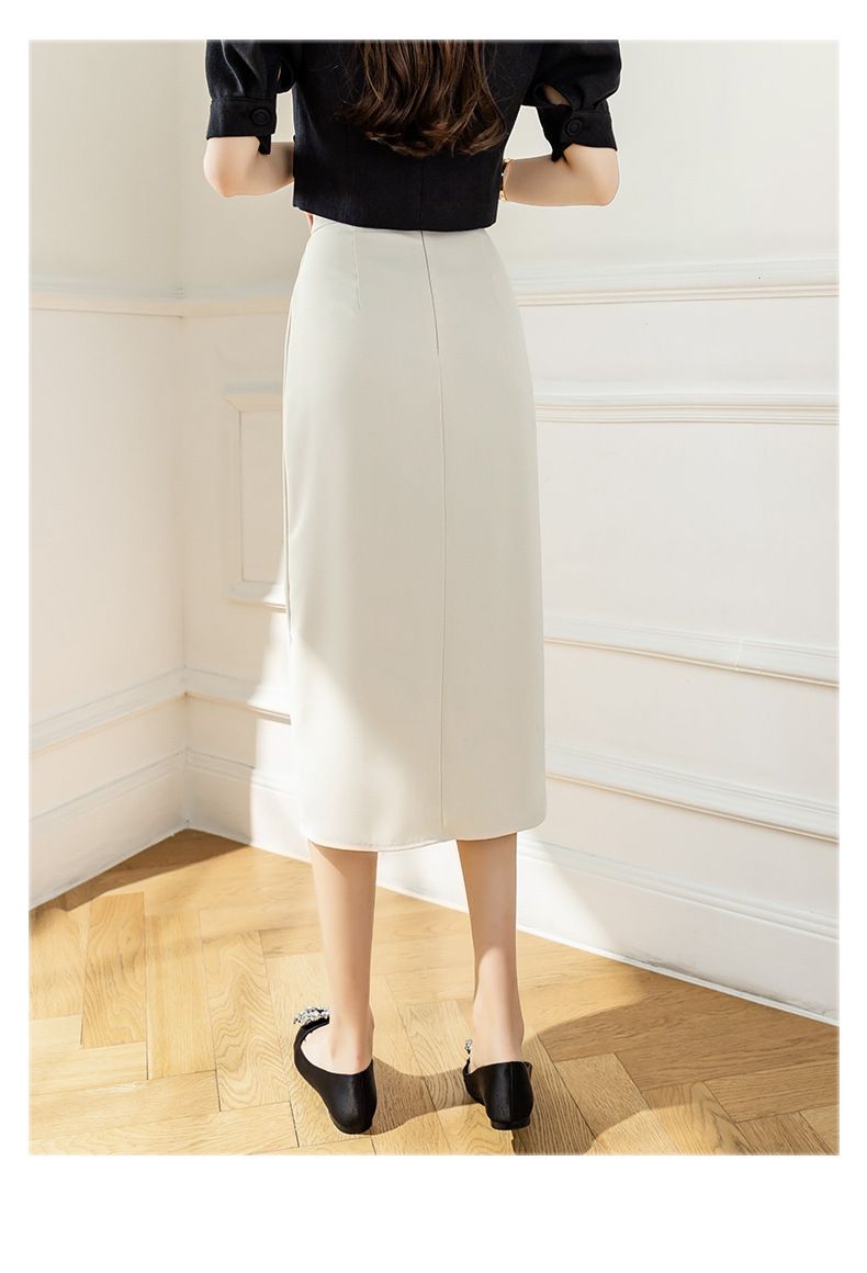 アシンメトリーな裾が歩行時に優雅に揺れ動き女性らしい魅力的なスタイリングが完成