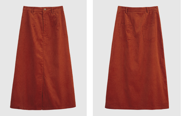 秋冬にぴったりの温かみのある裏起毛コーデュロイ素材を使用したロング丈のタイトスカートです。