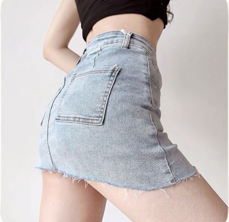 裾のフリンジ加工がこなれた印象を演出し、ミニ丈で脚長効果も抜群です。