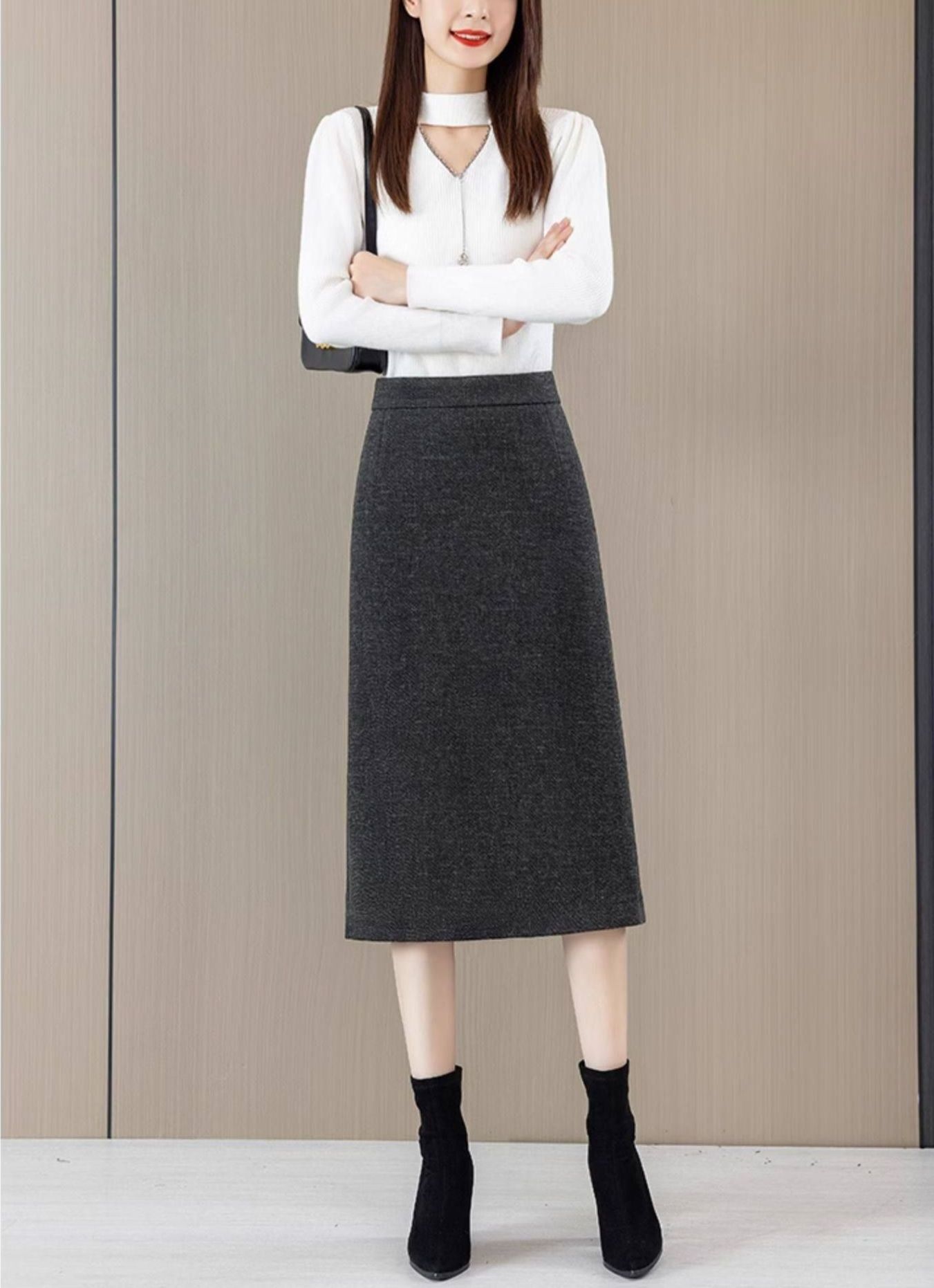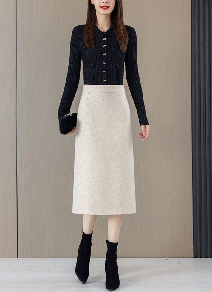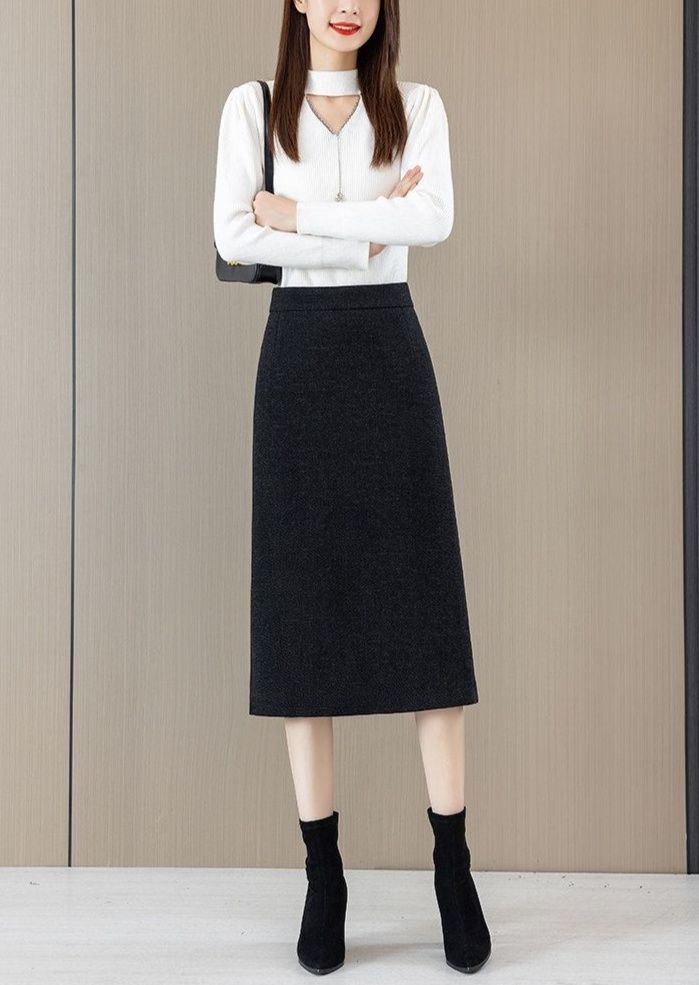 ロング丈で女性らしいシルエットを演出し、バックスリットが歩きやすさと抜け感をプラスします。