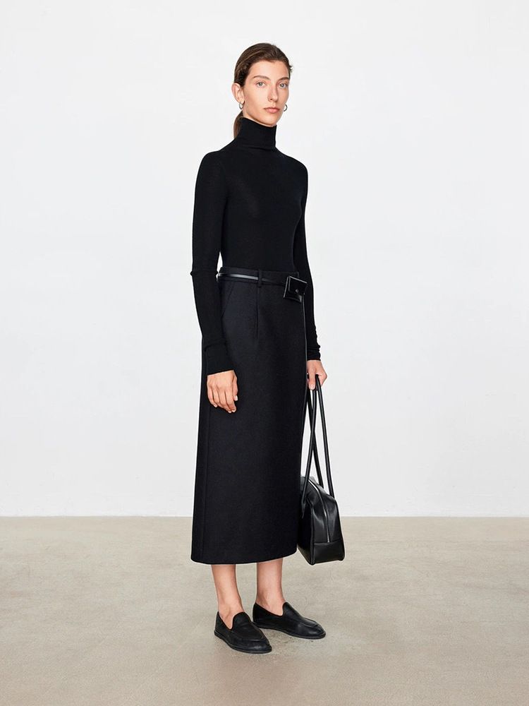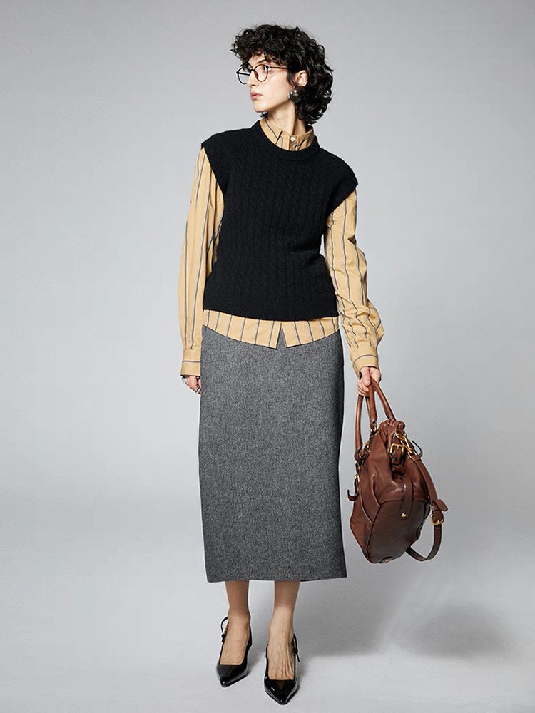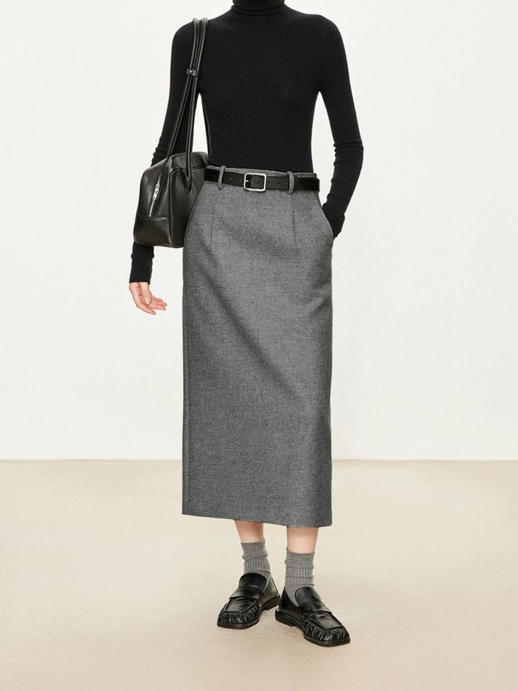 落ち着いた雰囲気が魅力のタイトスカートロング丈は、通勤からカジュアルまで幅広く活躍します。