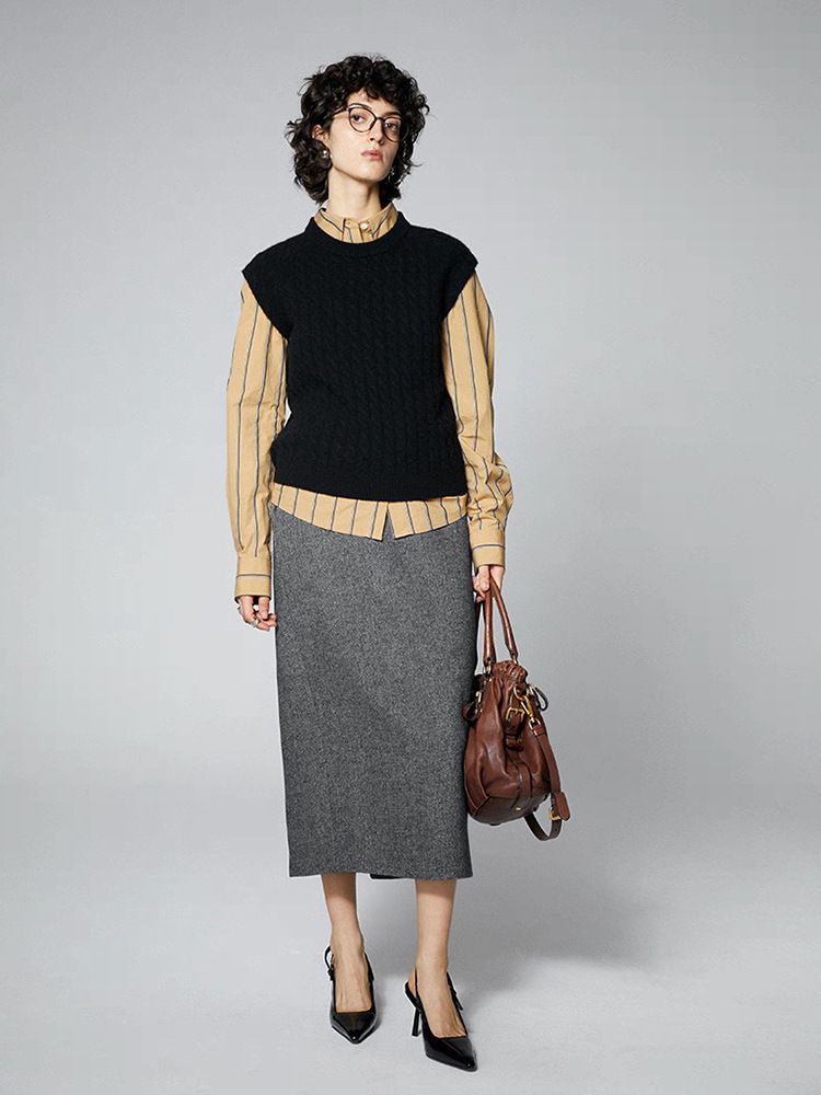 後ろに入ったスリットが歩きやすさと上品な印象を両立させる洗練されたデザイン