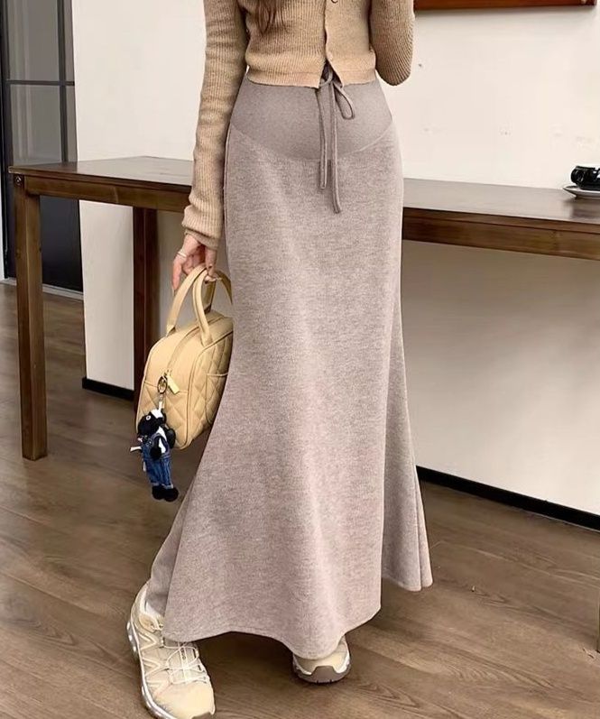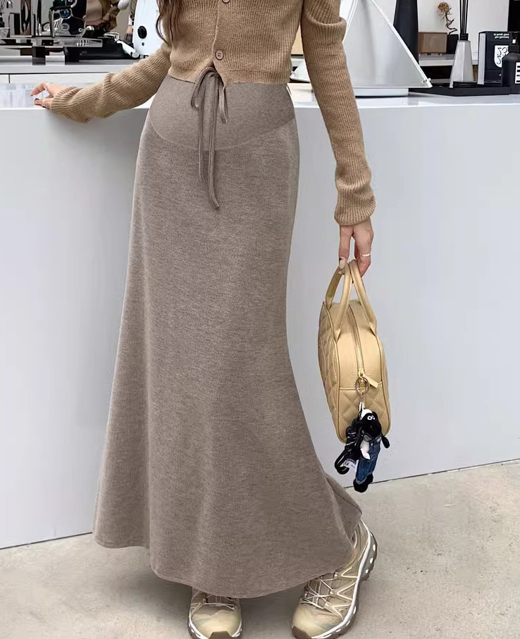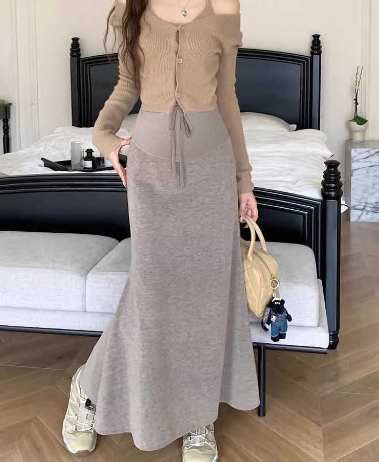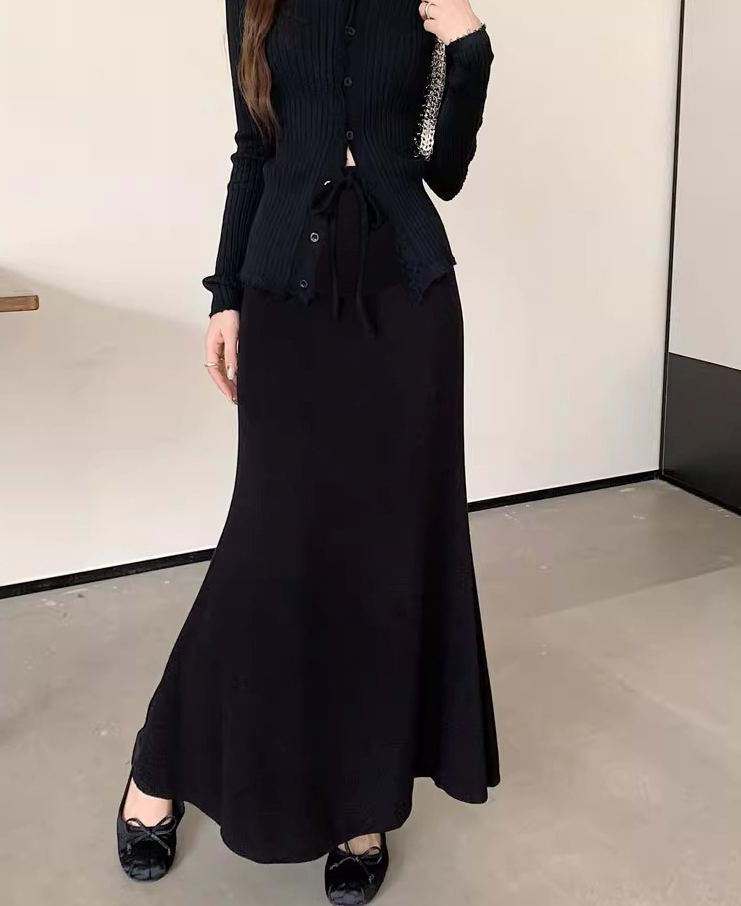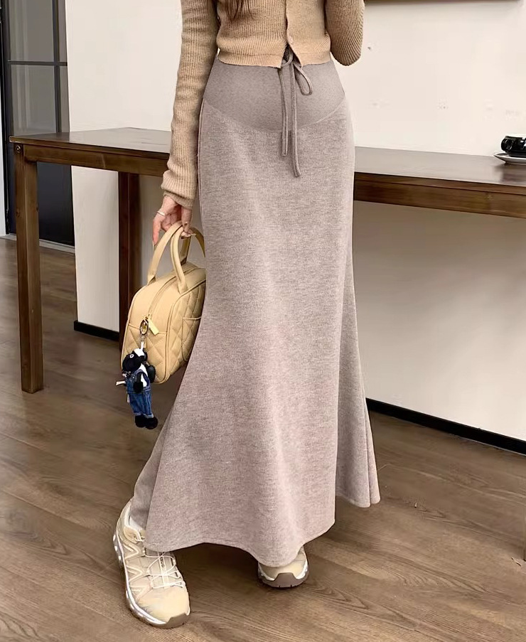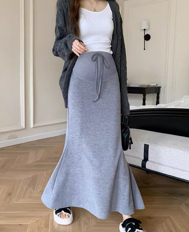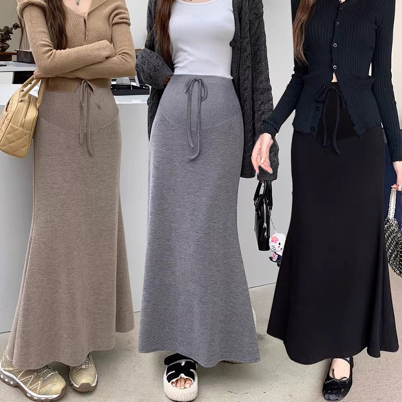 ウエスト部分のリボン紐がアクセントになったマキシ丈のタイトスカートです。