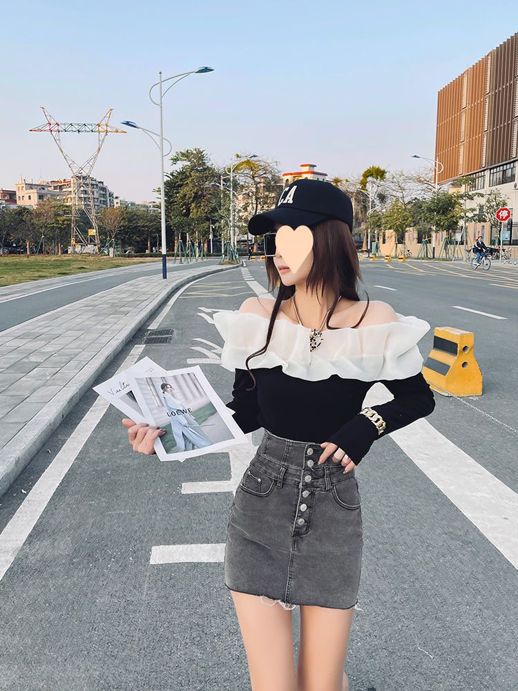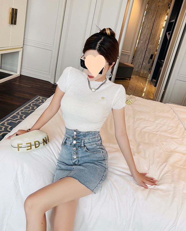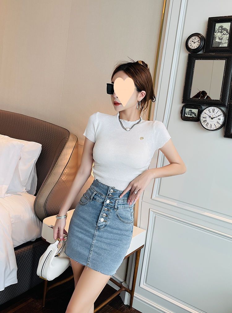 体のラインを美しく見せるタイトスカートデザインのミニ丈デニムスカートです。