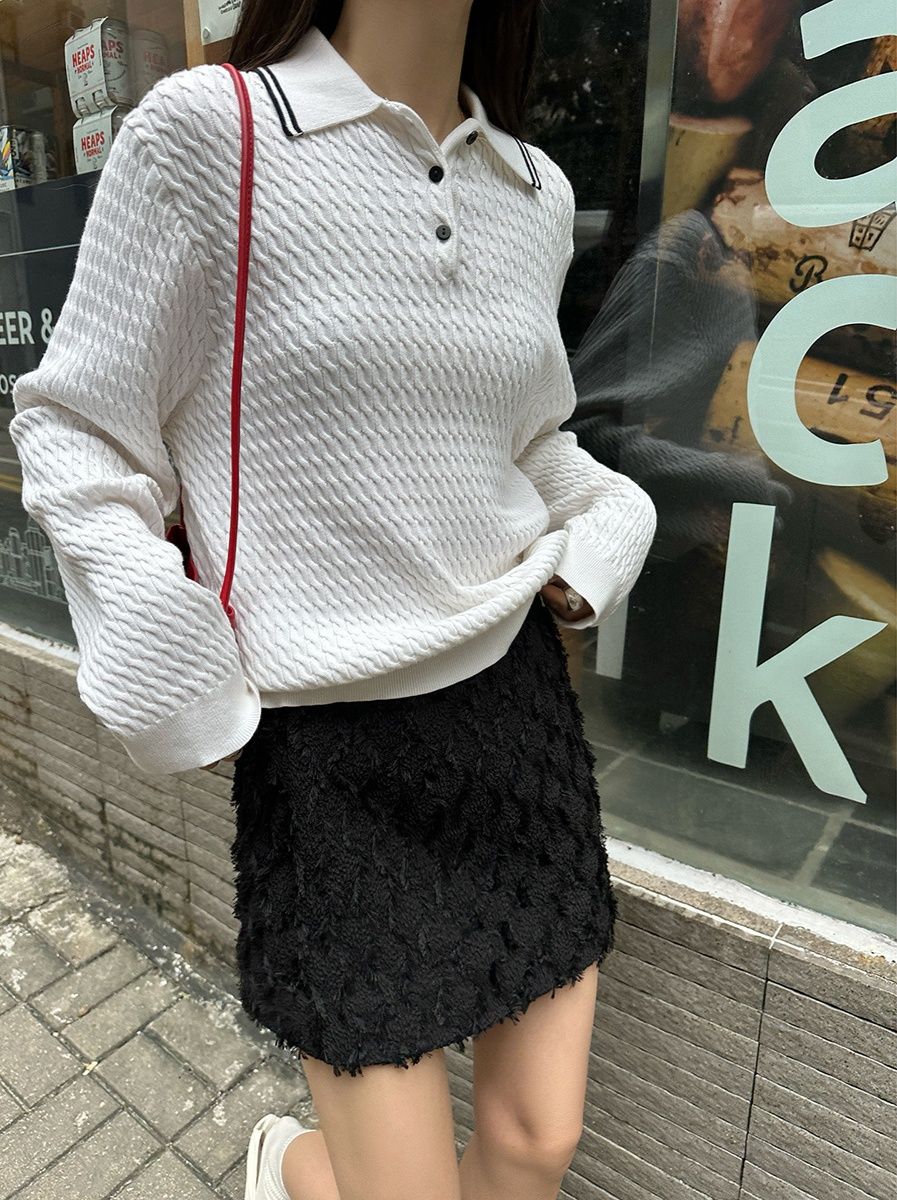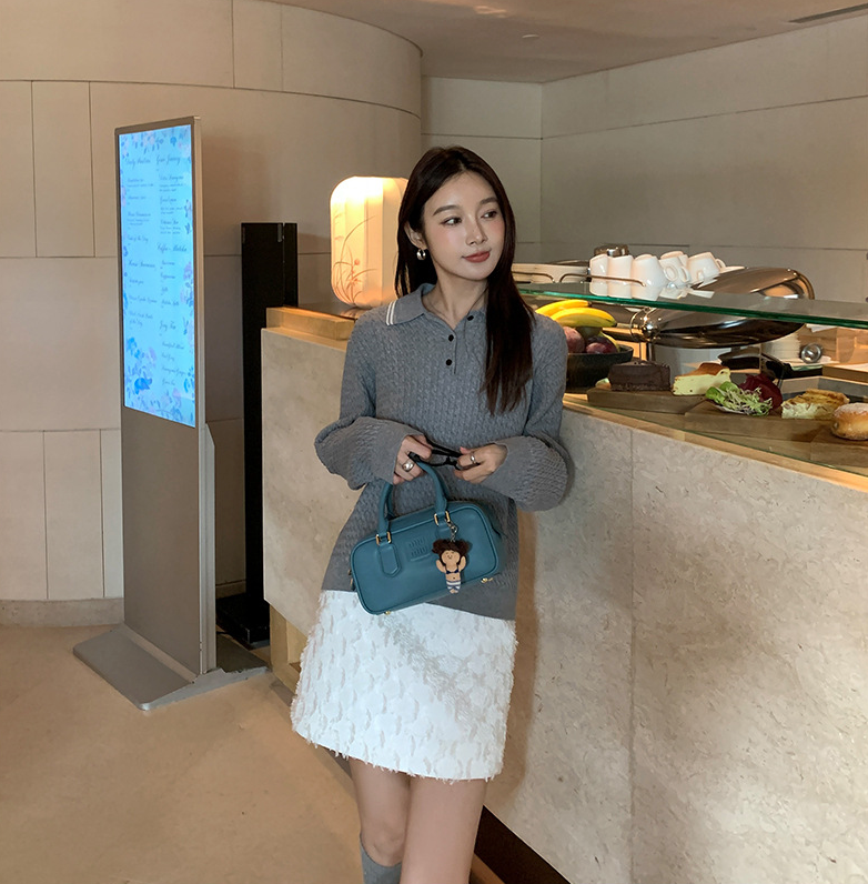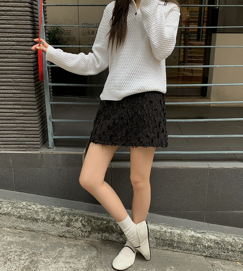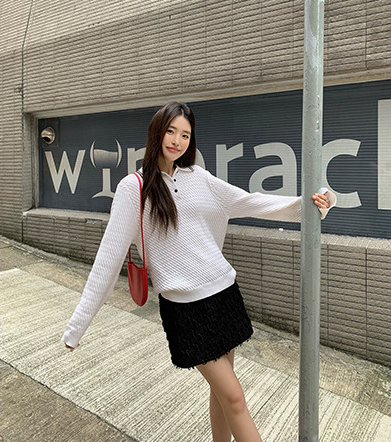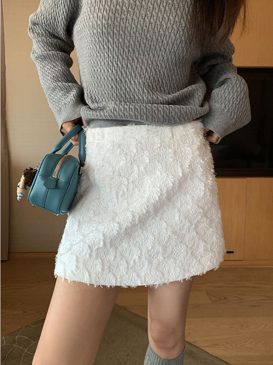 立体感のある毛足が女性らしい優しい雰囲気を演出し、体のラインに程よくフィットするシルエットが美しい脚のラインを引き立てます。