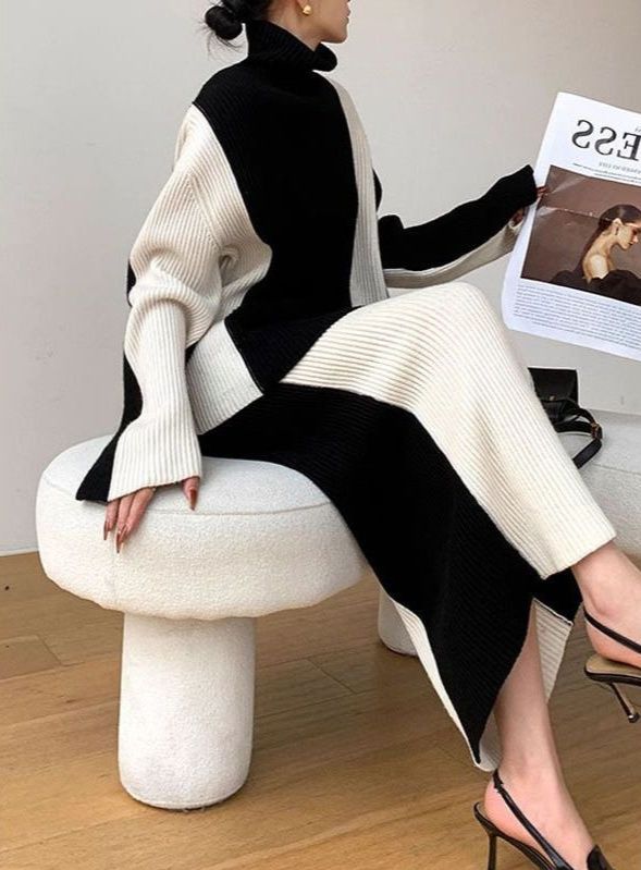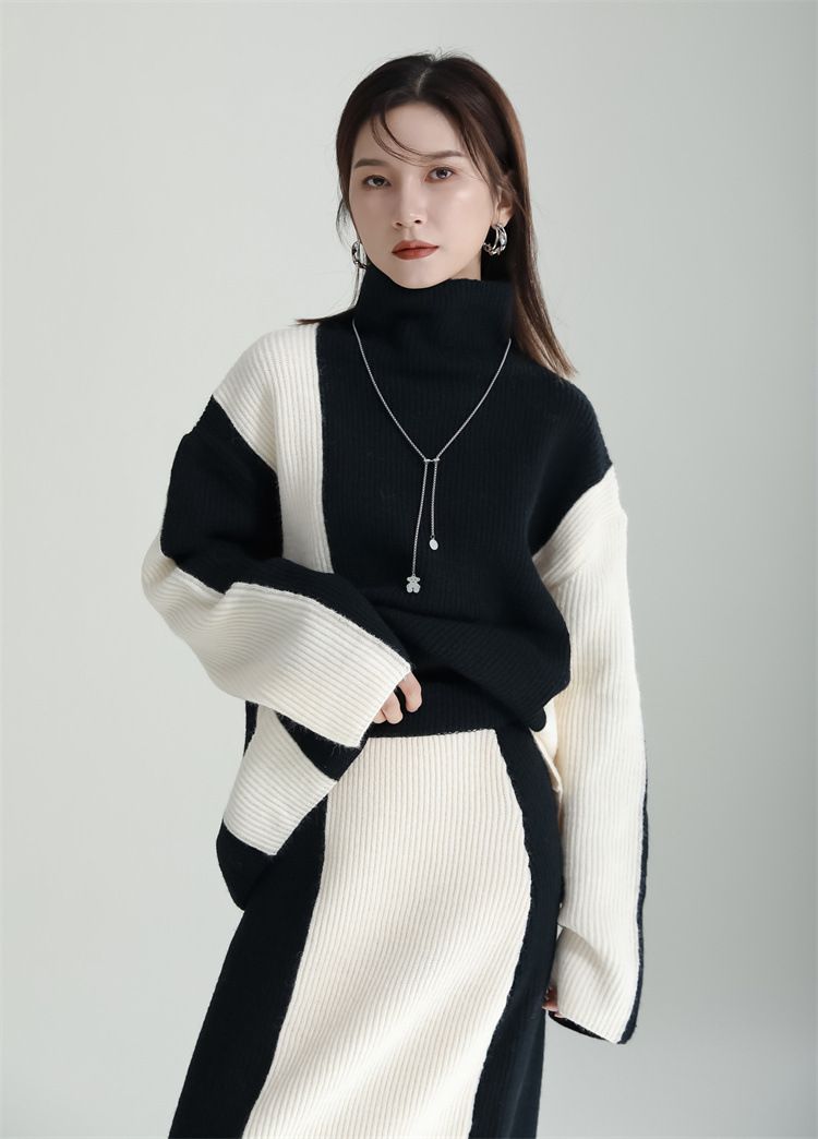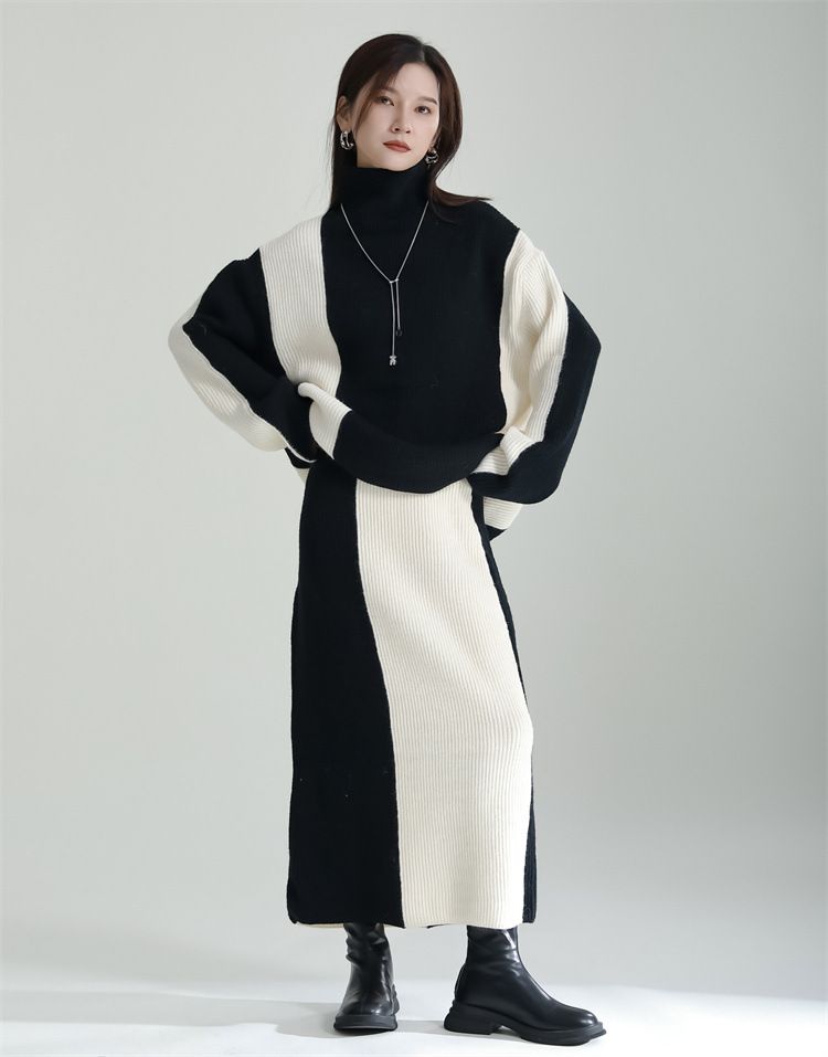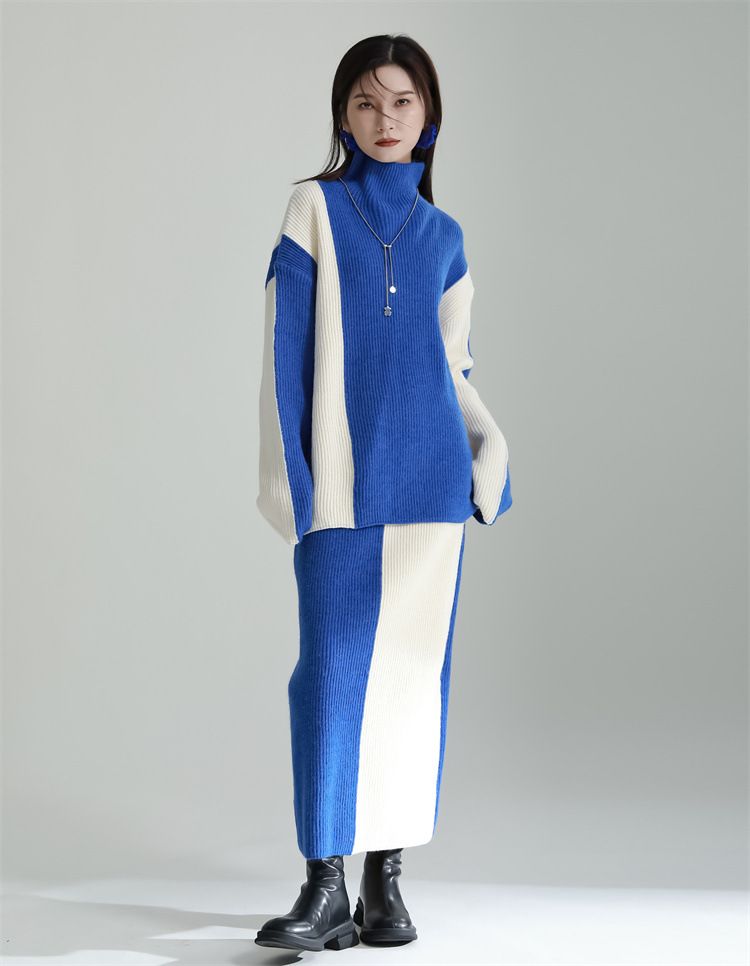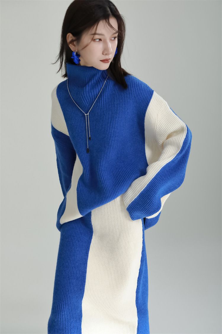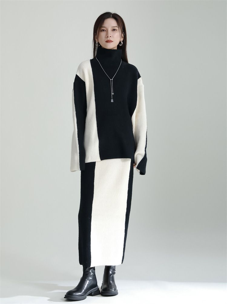 トップスとスカートの配色デザインが個性的で、単品使いも可能な着回し力抜群のアイテム。