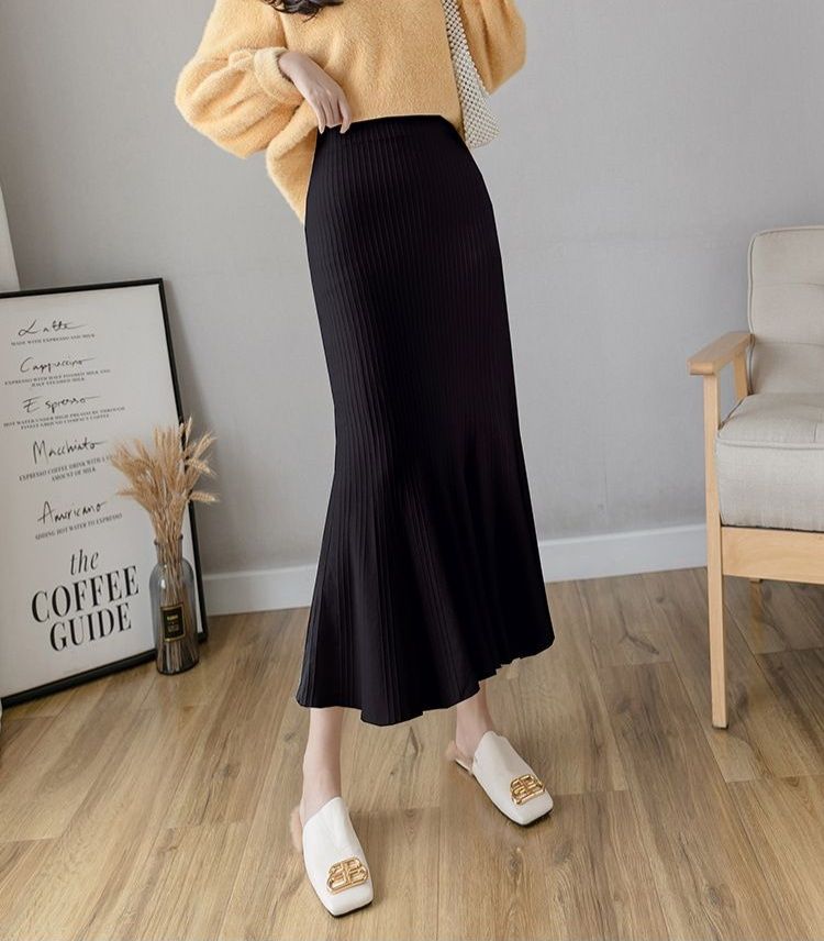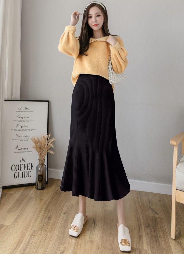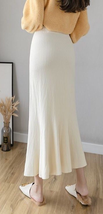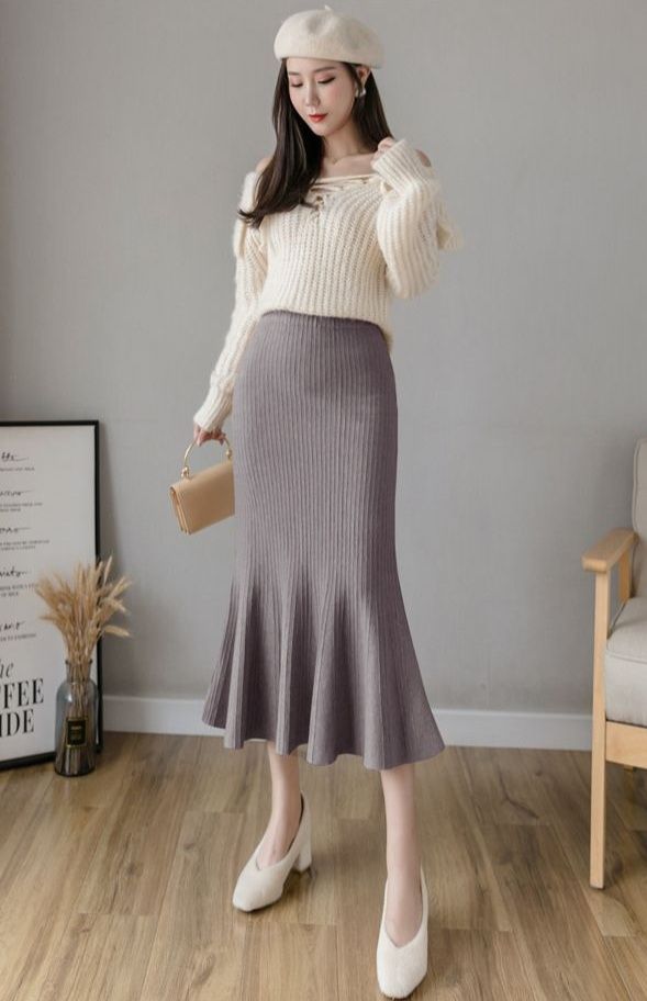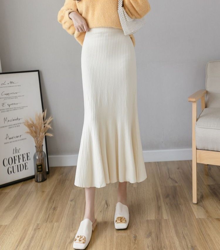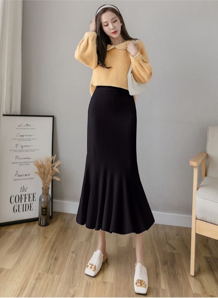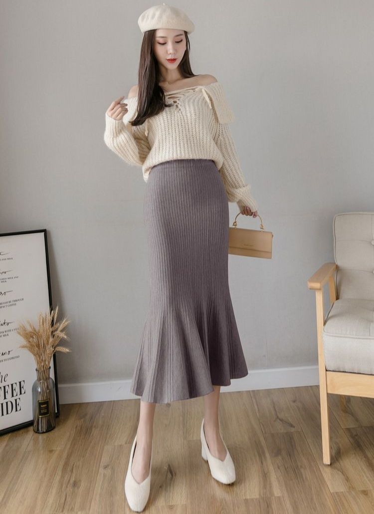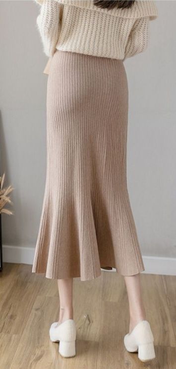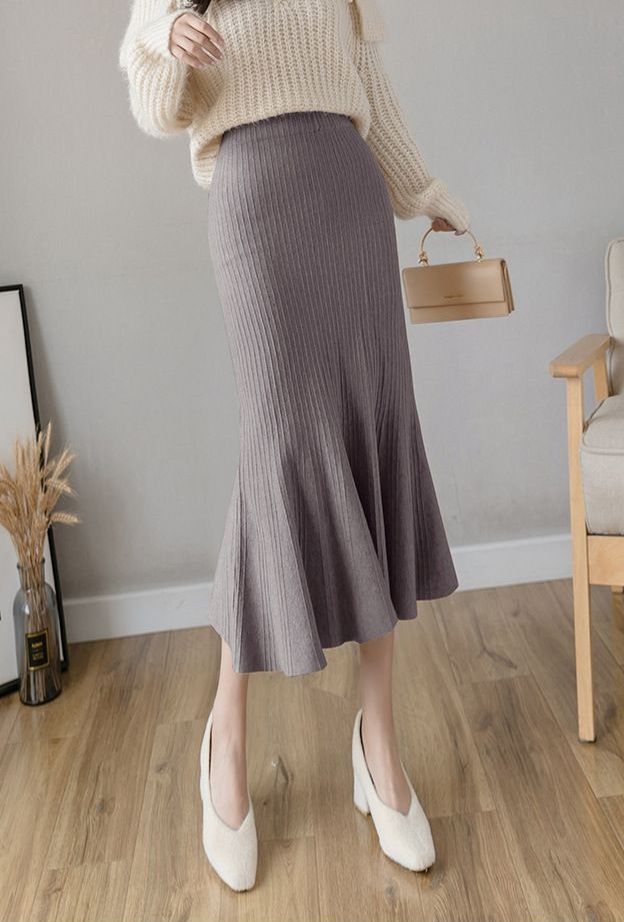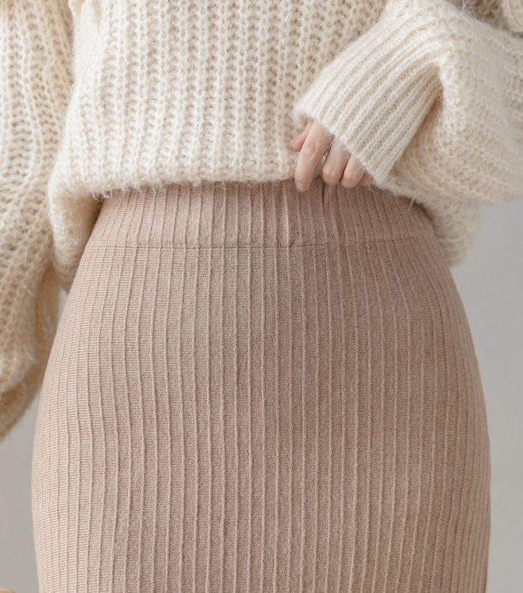 縦リブ編みが美しいニット素材のタイトスカートです。