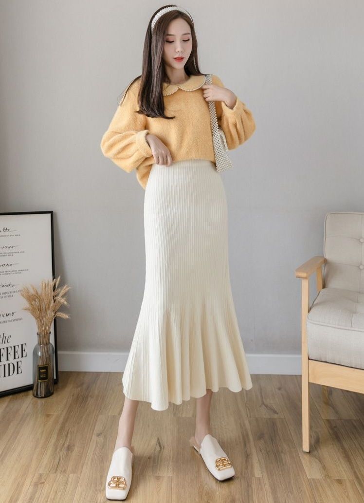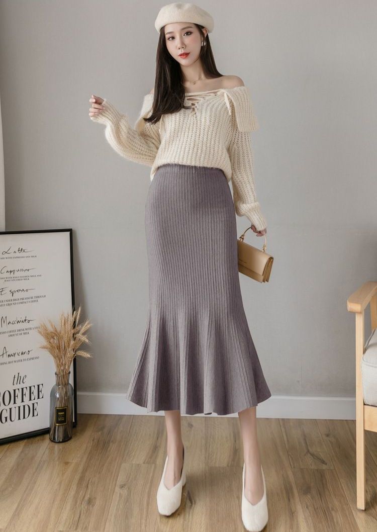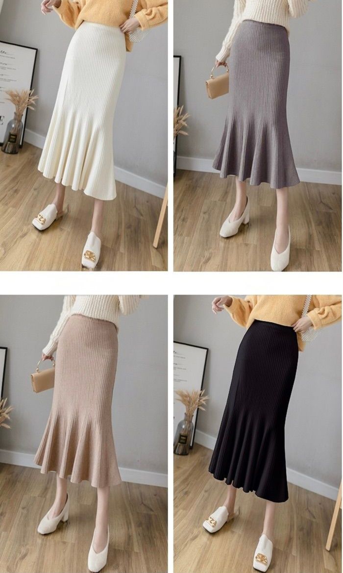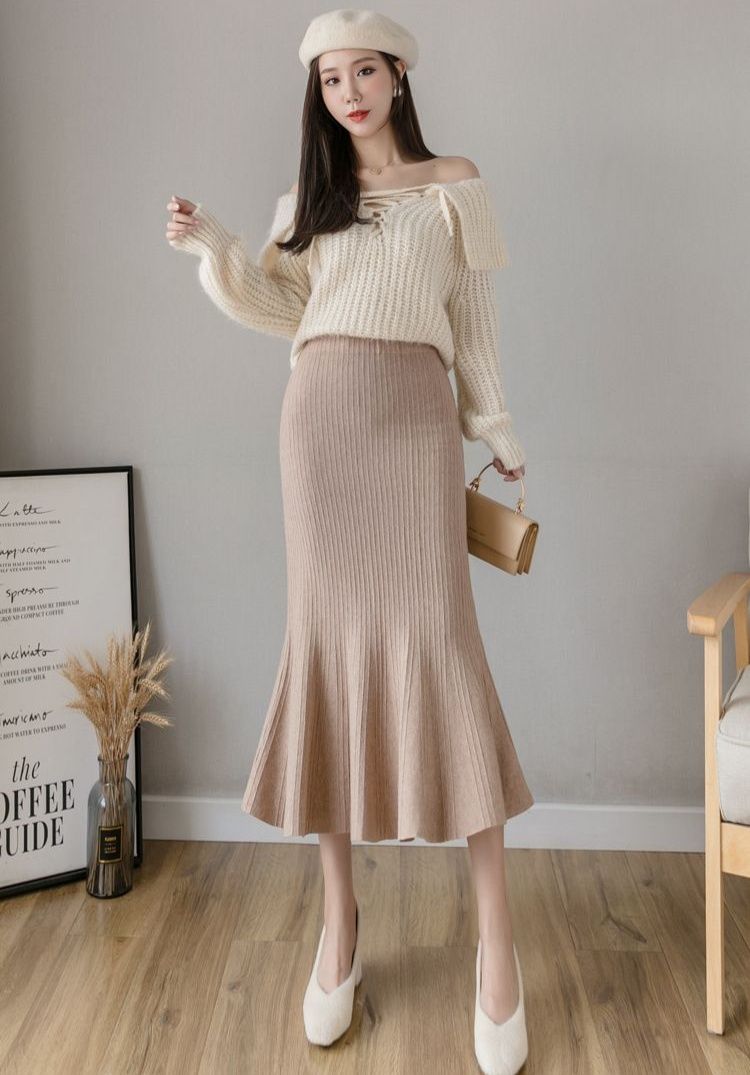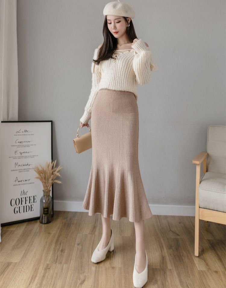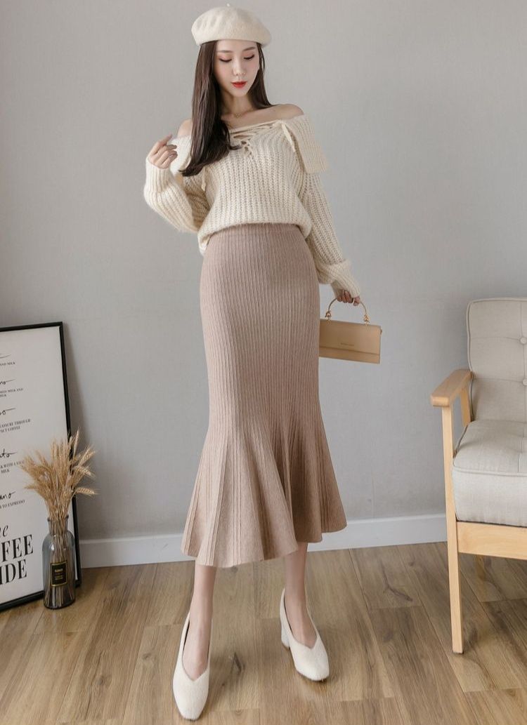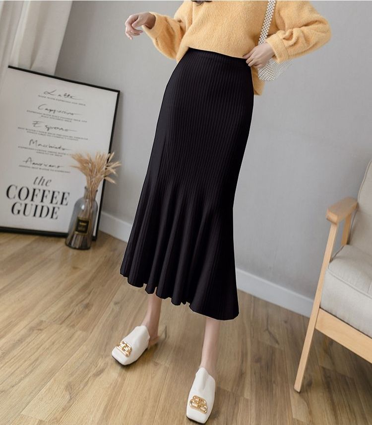 縦リブ編みが美しいニット素材のタイトスカートです。