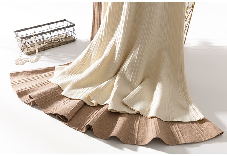 しなやかで柔らかなニット素材が体のラインに美しくフィットし、上品で洗練された印象を演出