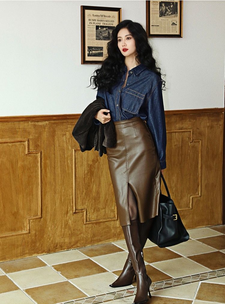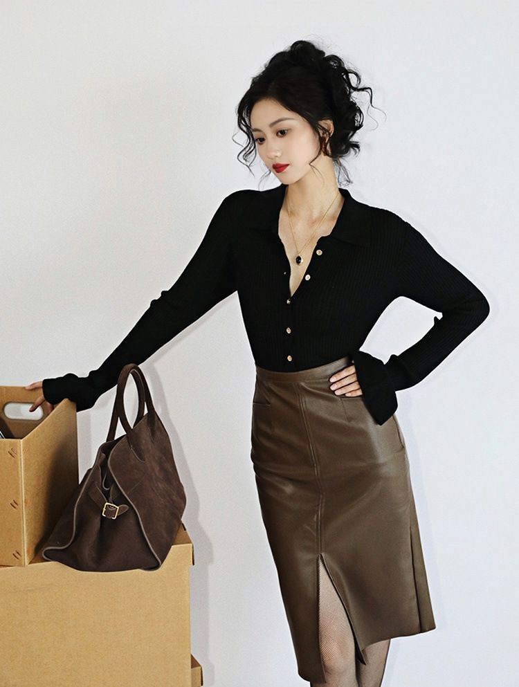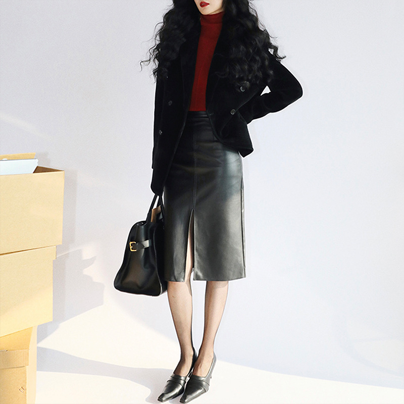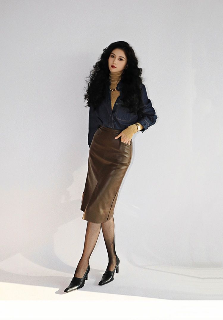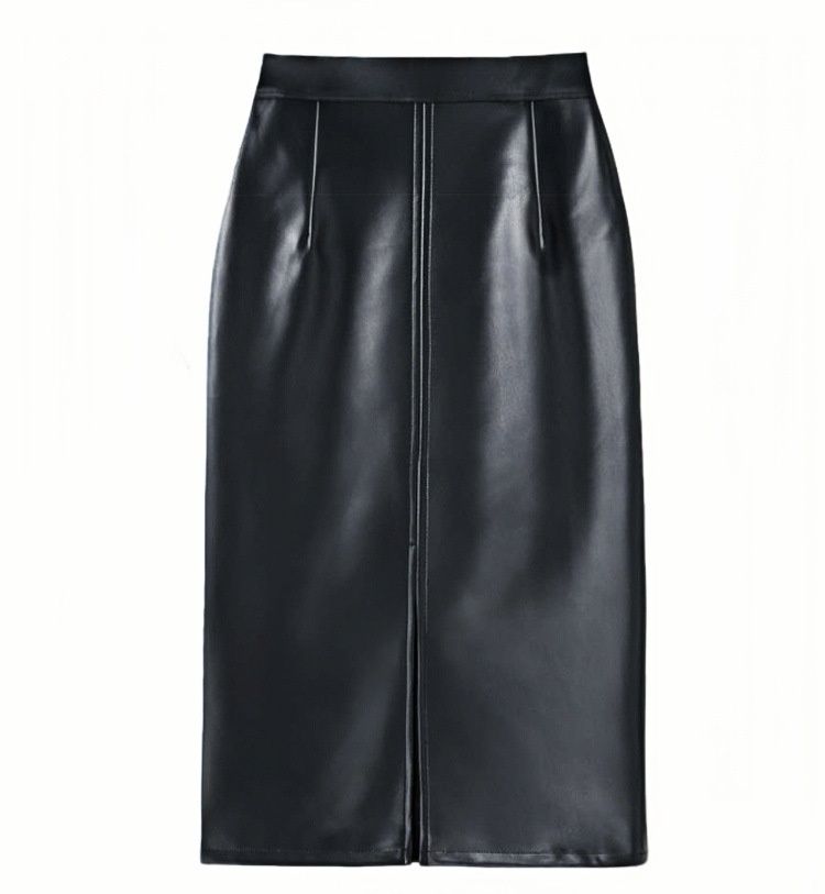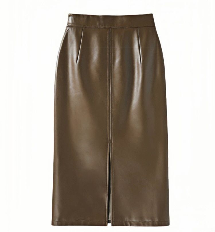 上品な光沢感のある合成皮革素材を使用したタイトスカートです。