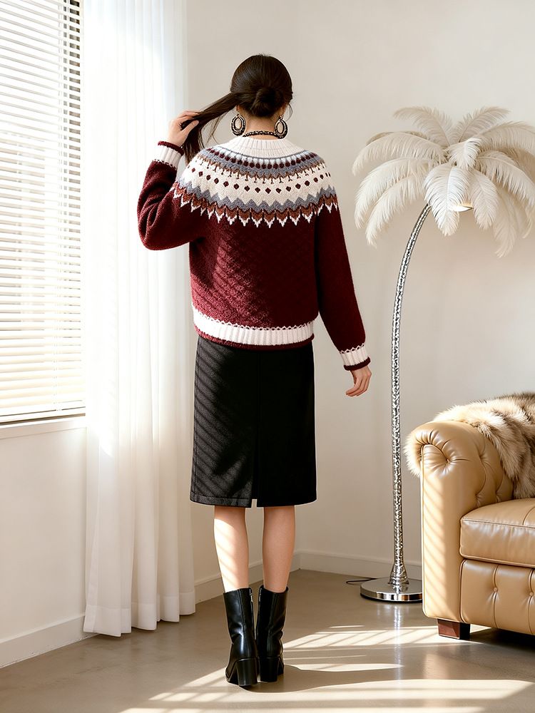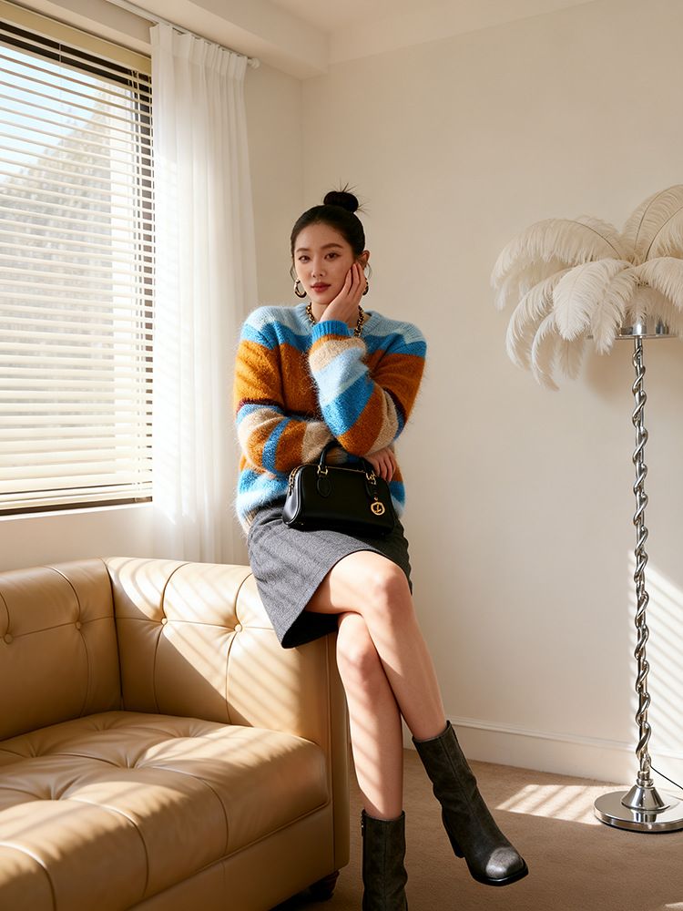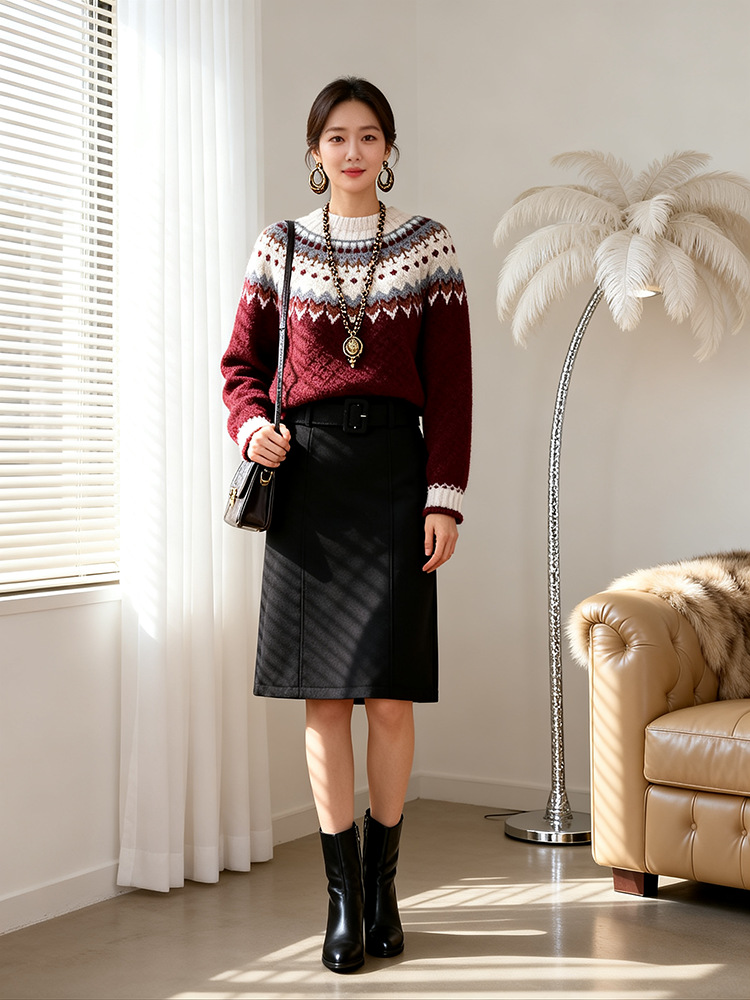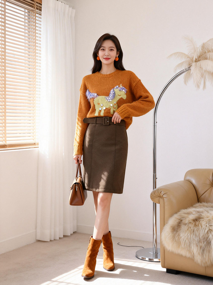 ニットやブラウスとの相性も抜群で、秋冬のコーディネートに欠かせない一枚に仕上がっています。